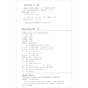 本套教材编写原则为指导性与操作性相结合,旨在帮助考生熟悉测试重点,总结测试规律,快速提高翻译实践能力,同时本套教材也可作为高校朝鲜语/韩国语翻译硕士专业(MTI)学生和具有相应水平的各类人员的自学用书。