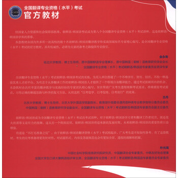 本套教材为全国翻译专业资格(水平)考试官方教材,由全国翻译专业资格(水平)考试办公室组织国内外高校的数十位朝鲜语/韩国语语言学、翻译教学和翻译实践领域知名专家学者,根据《全国翻译专业资格(水平)考试朝鲜语/韩国语考试大纲》编写。围绕提升翻译人员双语互译水平,重点考查语言能力、翻译能力和知识能力等要求,专家们将多年的理论研究和翻译实践经验融入每一个知识点和翻译实例之中,在新冠肺炎疫情期间克服重重困难,反复磋商,精心编排。
